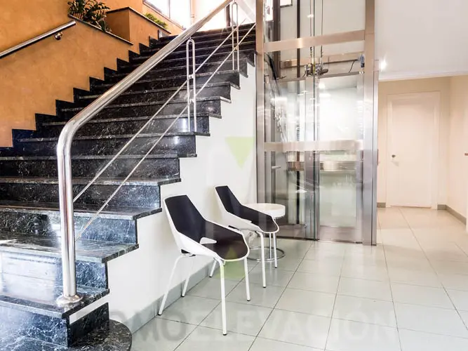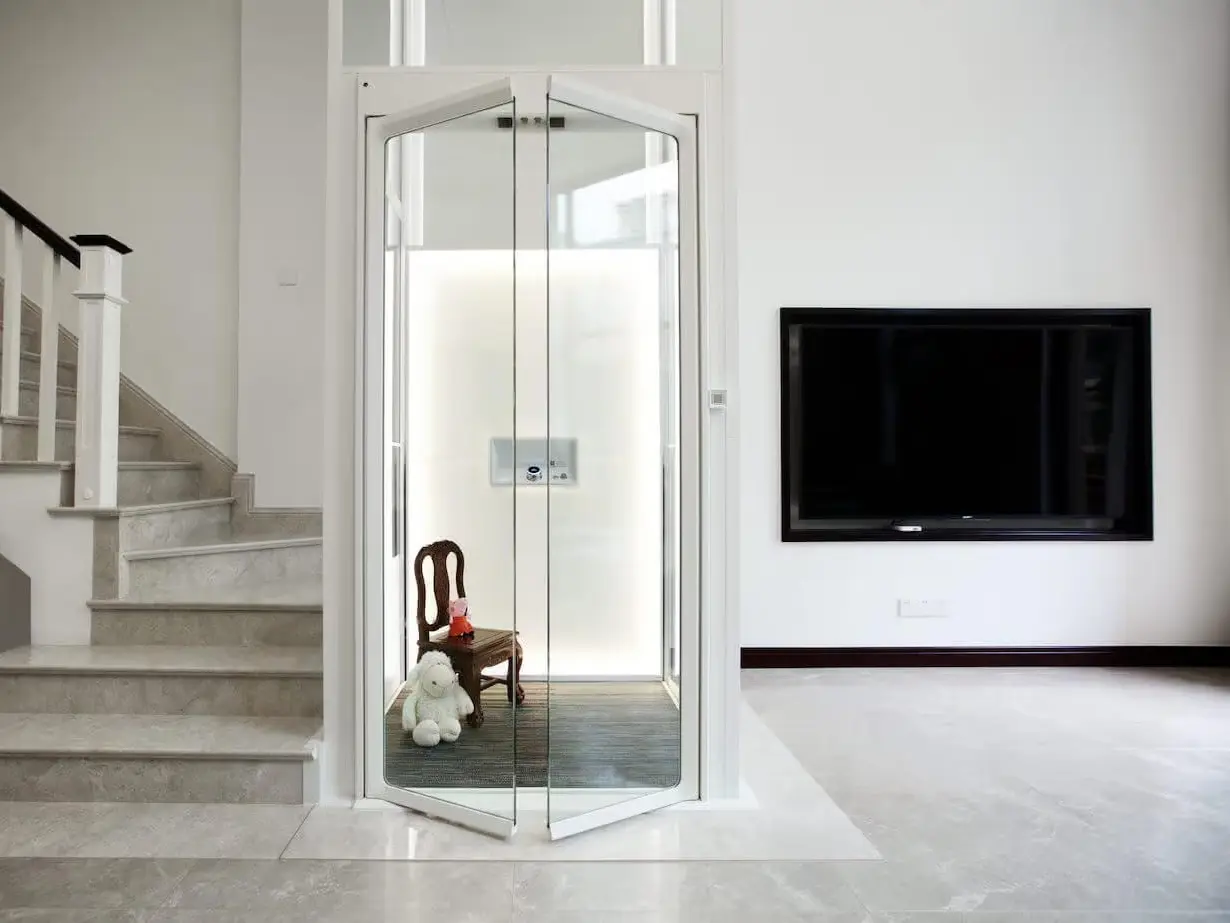 Ascensor doméstico compacto, sin foso ni sala de máquinas, ideal para viviendas y espacios reducidos.